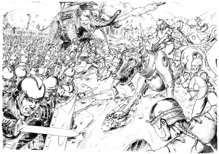To build steampunk into your world, you must first examine your world. What are some creatures your characters fear? Hold holy or important? Aztecs would hold eagles in awe, Chinese the dragon. My Romans? The same creature that terrified and awed them since the Punic Wars – the African elephant. Take that, make it machine and not animal, and voilà, a creature that makes sense and is connected to Roman history.