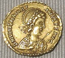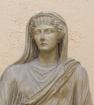 Perhaps Galla Placidia (AD 392 – 450), daughter of the Roman Emperor Theodosius I, Regent for Emperor Valentinian III from 423 until his majority in 437, and a major force in Roman politics for most of her life. She was consort to Ataulf, King of the Goths from 414 until his death in 415, and Empress consort to Constantius III from 417 until his death in 422.