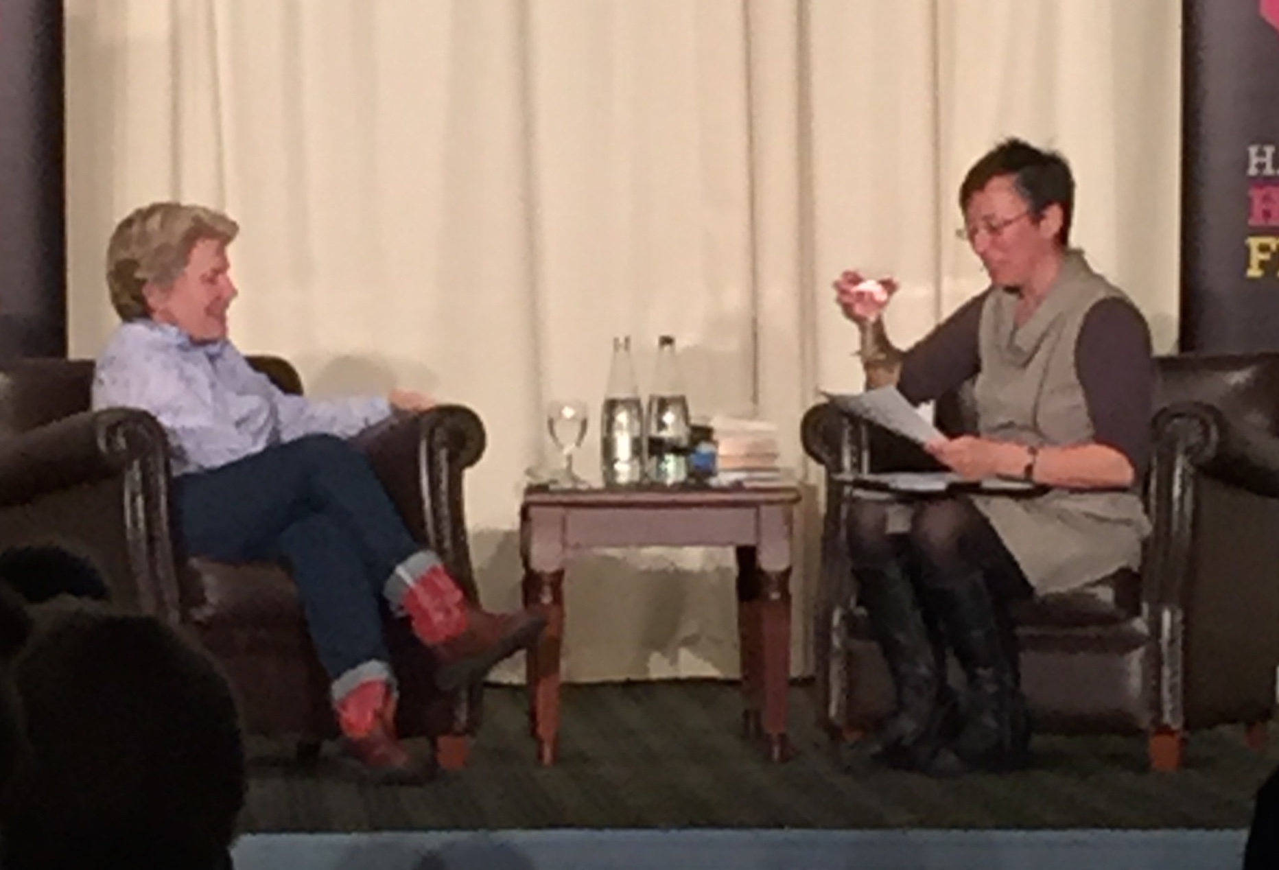 Friday ended on a comedy high as Sandi Toksvig was interviewed by festival organising chair, Manda Scott. Sandi had to choose eight books she would take to the fictional desert island.