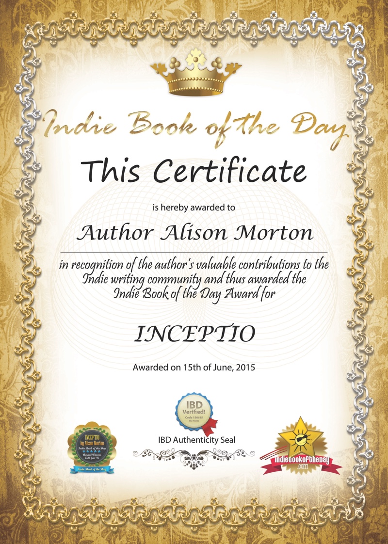 Delighted to discover that INCEPTIO had been nominated for the IDB award and even more so when I received an email saying it had been selected as Indie Book of the Day today, 15 June 2015!