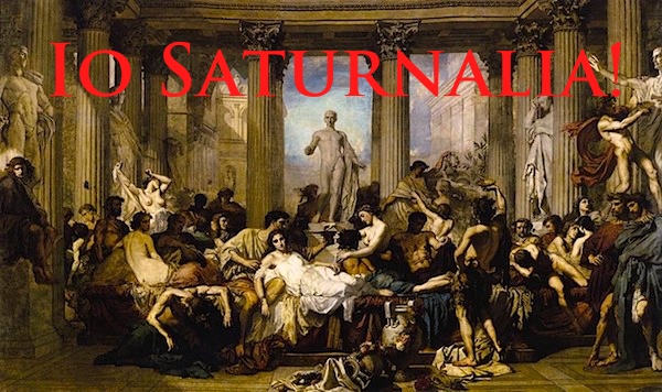 Now on eighth day of Saturnalia. The poet Catullus called it “the best of days.” In ancient Rome, private festivities of Saturnalia had expanded to seven days by the late Republic, but during the Imperial period it varied from three to five days. Caligula extended official observances to five.