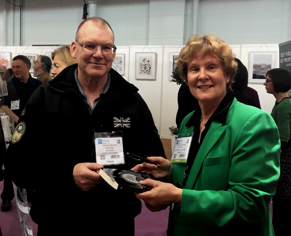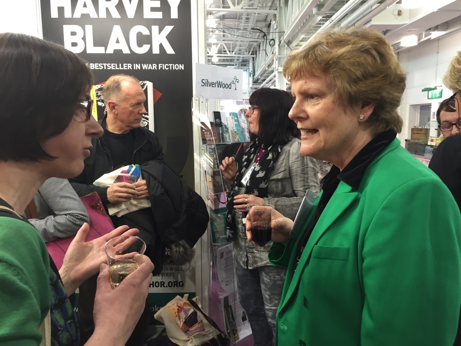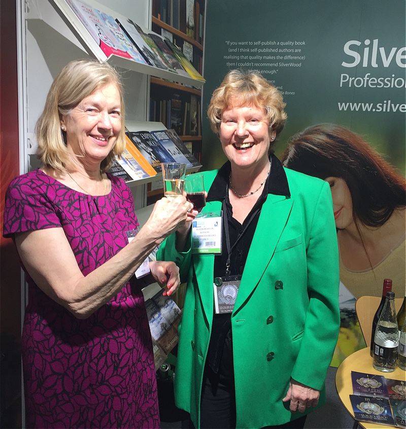 Then chatting and mingling with SilverWood’s Helen Hart and team, with potential and current authors. After an entertaining talk by bestselling author Peter James and catching up with friends from the Alliance of Independent Authors (ALLI), and lunch with a fellow Romantic Novelists’Association (RNA) author, it was back to the stand for launch preparation. The wine arrived, so I knew we were ready!