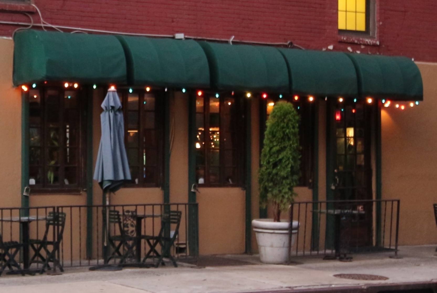 The taxi stopped outside a […] restaurant with a dark green awning curving over like a protective hood. Soft yellow lights shone through tinted glass. Inside, it was subdued, intimate and rich. Light music played and couples danced. I’d never been in such a place before.