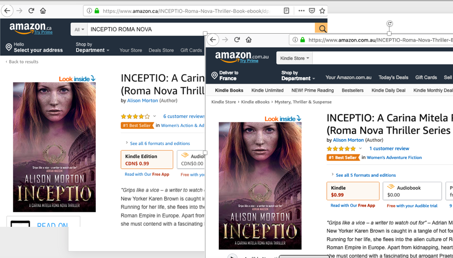 Okay, I admit it, this is a (slightly) bragging post, but I was thrilled when INCEPTIO hit the #1 Best Seller spot on the Australian and Canadian Amazon stores this weekend. And it didn’t do too badly in the UK one!