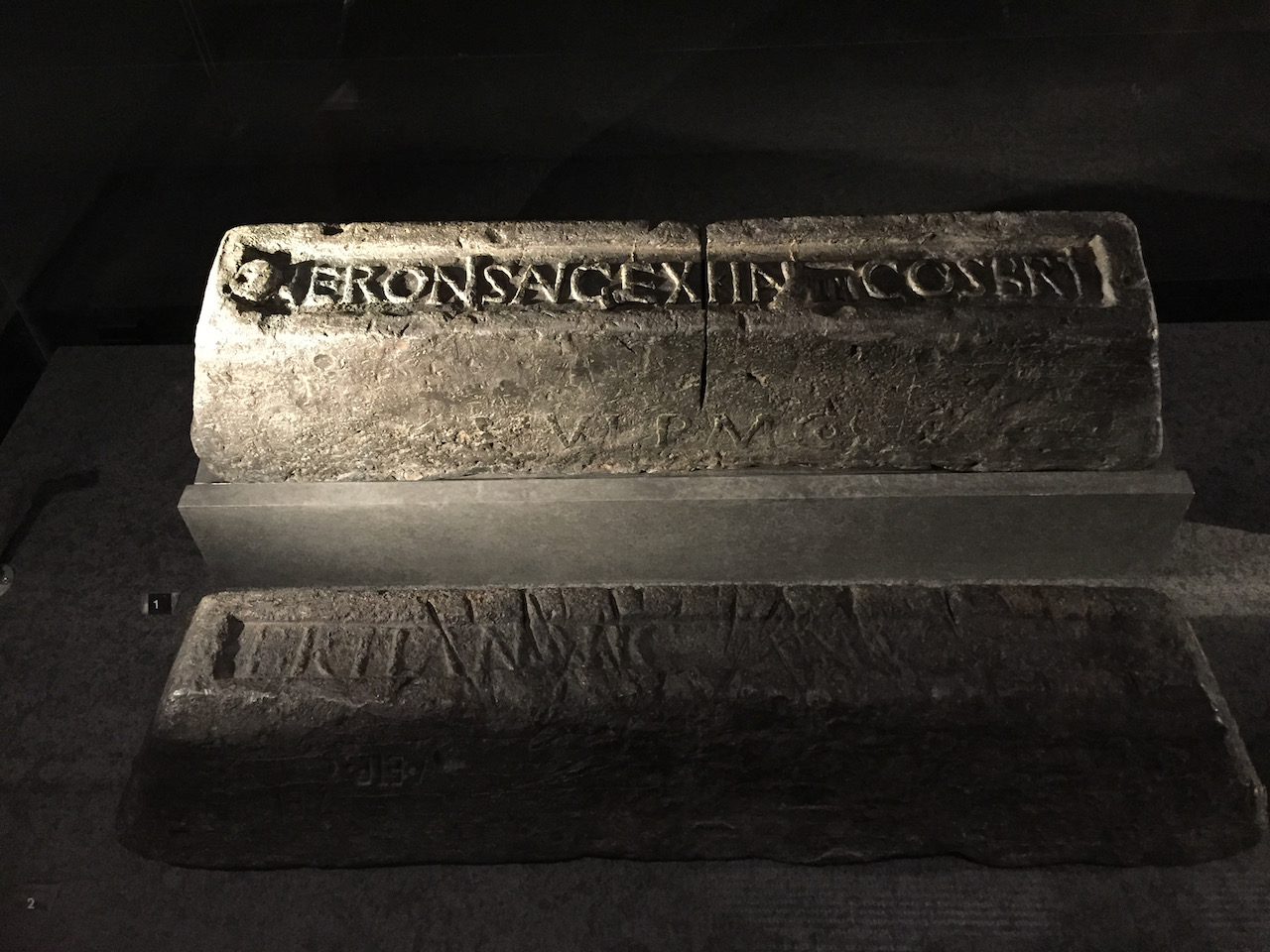 - Lead ingots, Mendips, Roman Britain. Top one showing Nero’s name