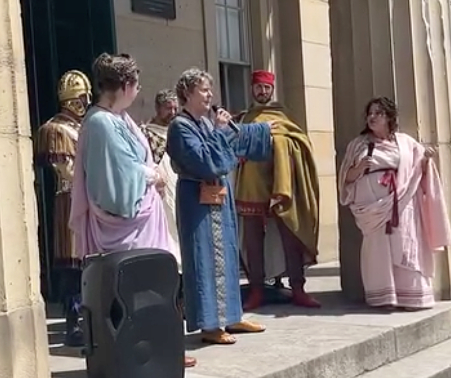 As “Julia”, I took part in the fashion parade with hi, the late Roman period emperor Flavius Constantinus and others. We each did a short explanation of our outfits and how they’d changed over the centuries.