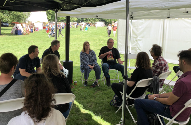 Best and Worst Emperors panel. Left to right: Alex Gough, Robin Price (chair), L J Trafford, Simon Turney
