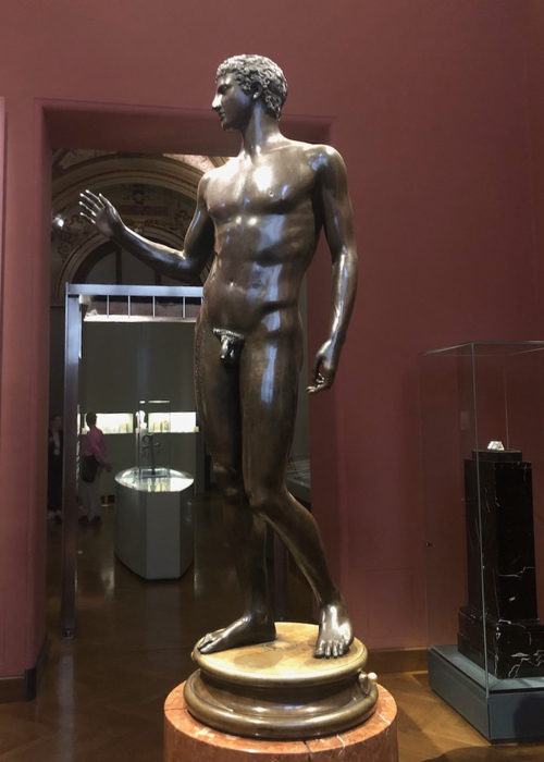 When I visited the Magdalensberg this summer, I was delighted to see the Youth in his splendid beauty as in the photo above. It’s a remarkably intact and high quality find – well buried apparently. But this is a modern copy of the one in Vienna.