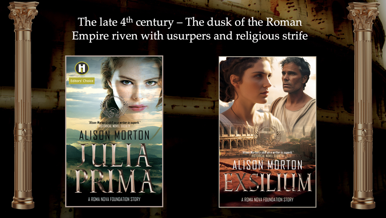 Alison Morton is the author of Roma Nova thrillers – INCEPTIO, CARINA (novella), PERFIDITAS, SUCCESSIO, AURELIA, NEXUS (novella), INSURRECTIO and RETALIO, and ROMA NOVA EXTRA, a collection of short stories. Audiobooks are available for four of the series. Double Identity, a contemporary conspiracy, starts a new series of thrillers. JULIA PRIMA, Roma Nova story set in the late 4th century, starts the Foundation stories. The sequel, EXSILIUM, is now out.