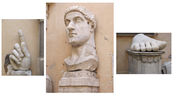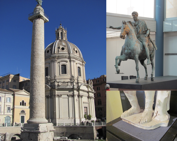 Trajan’s column, Rome, Marcus Aurelius equestrian statue, Capitoline Museums, Rome, Hadrian’s feet (Statue as Mars, Capitoline Museums, Rome. (Author photos)
