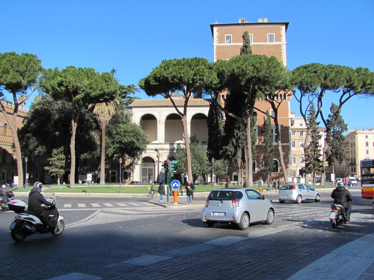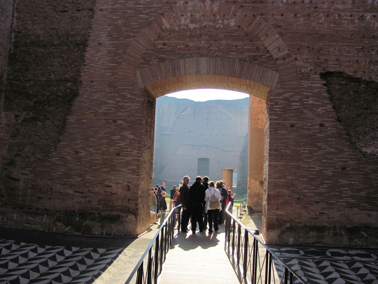 - End of walls and back through Mussolini’s modern arches
