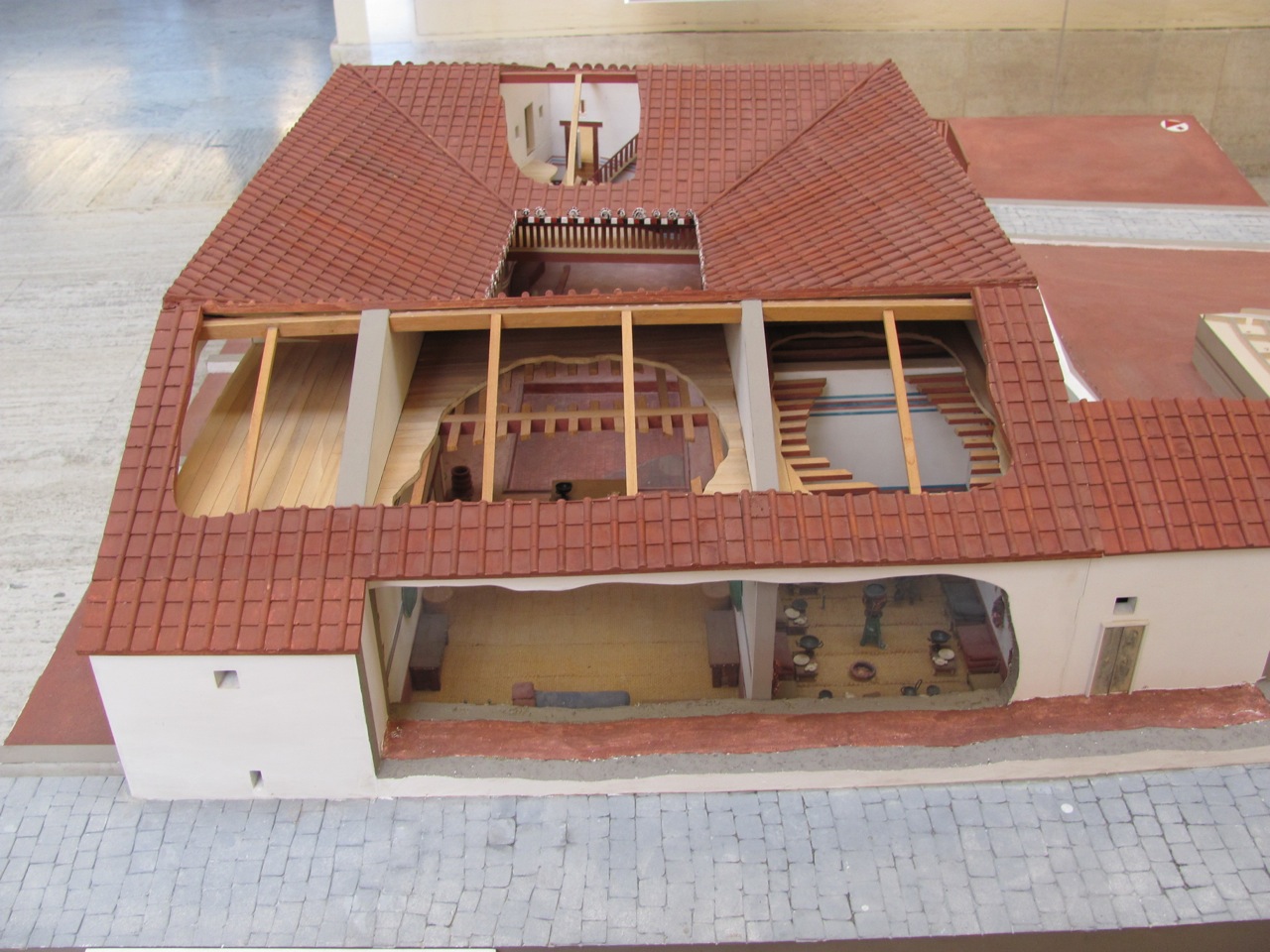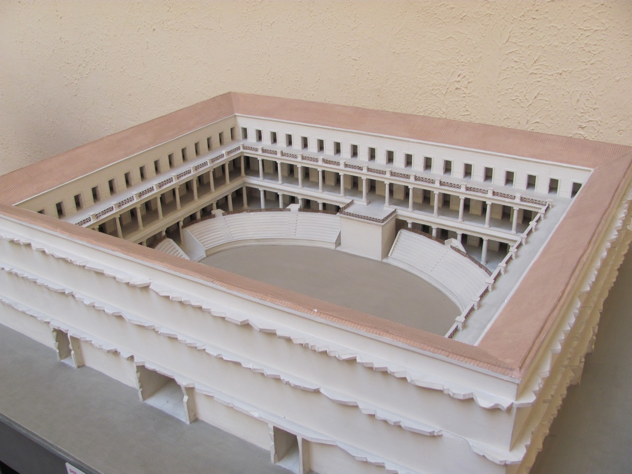 - Model of gladiator school, reconstructed. Time of Domitian AD 81-96